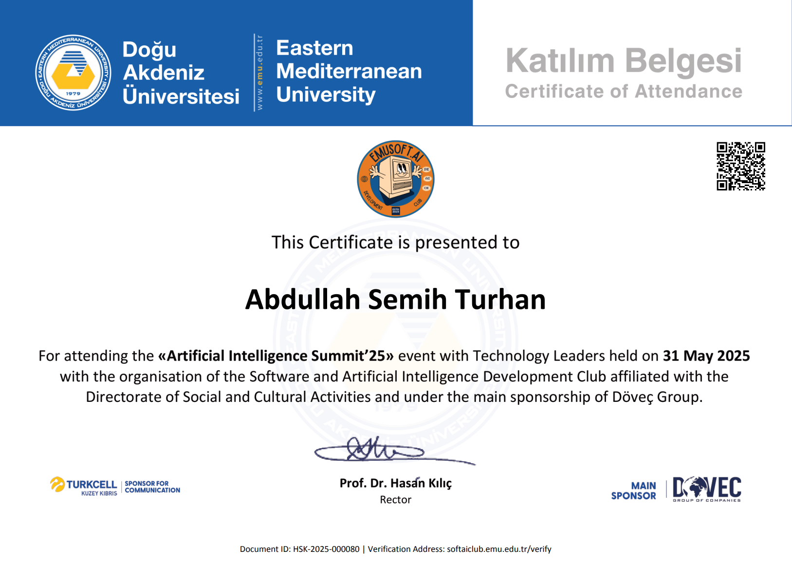 In the seminar titled “The Impact of Data Science and Artificial Intelligence on Our Future and Career Goals,” organized by the Software and Artificial Intelligence Development Club at my university, Mehmet Halil Başaranoğlu, a Lead Data Scientist and AI Expert at Apple, shared his insights on how data science and AI are shaping our future. The seminar explored their transformative potential in technology and their influence on career paths.